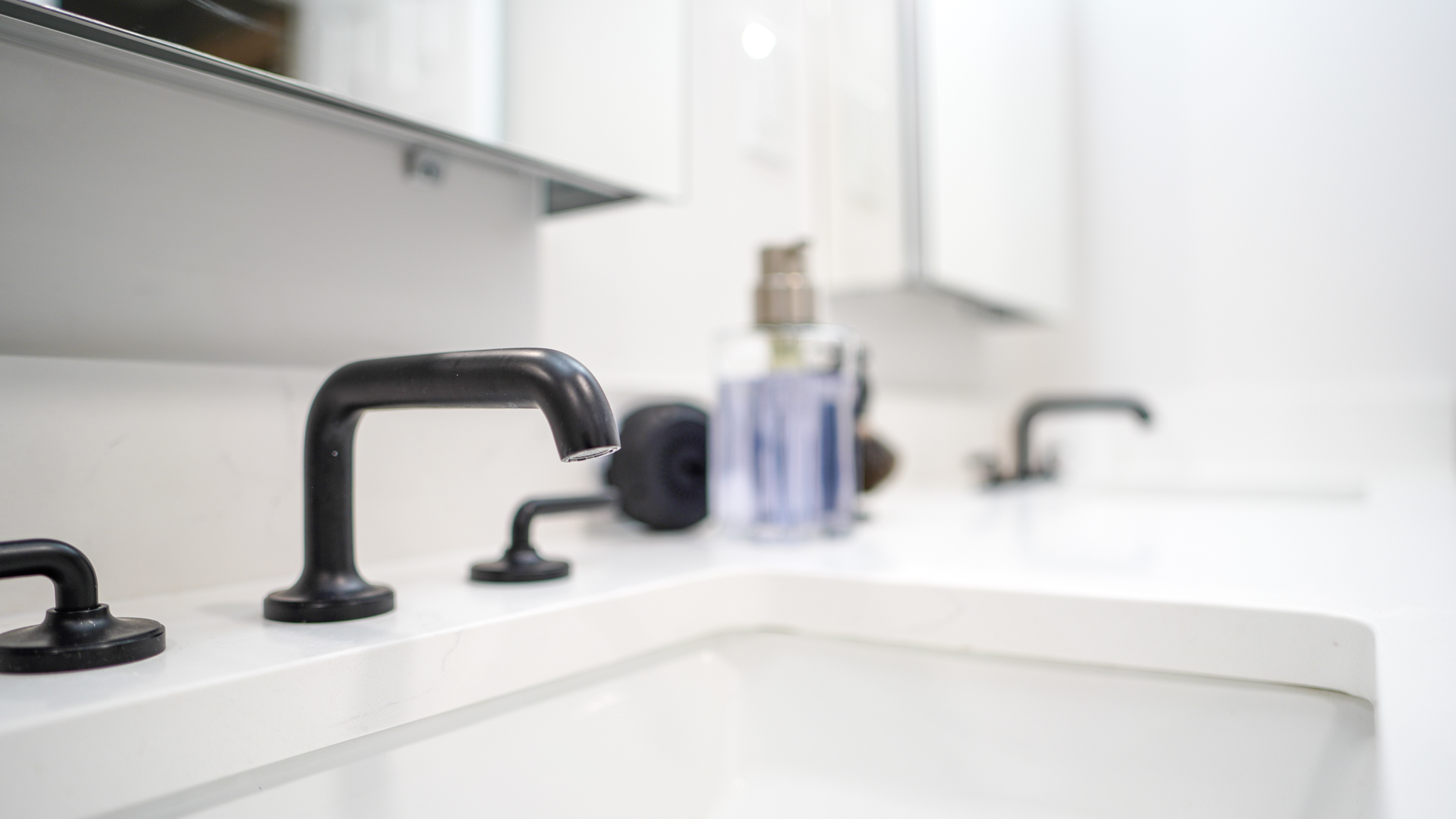 Black Fixtures & Natural Tones – A sophisticated combination that adds contrast while maintaining a warm and inviting atmosphere.