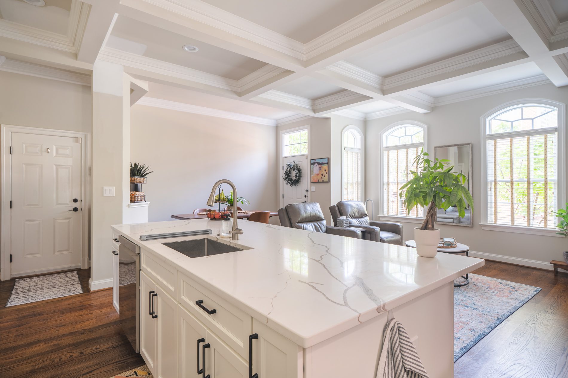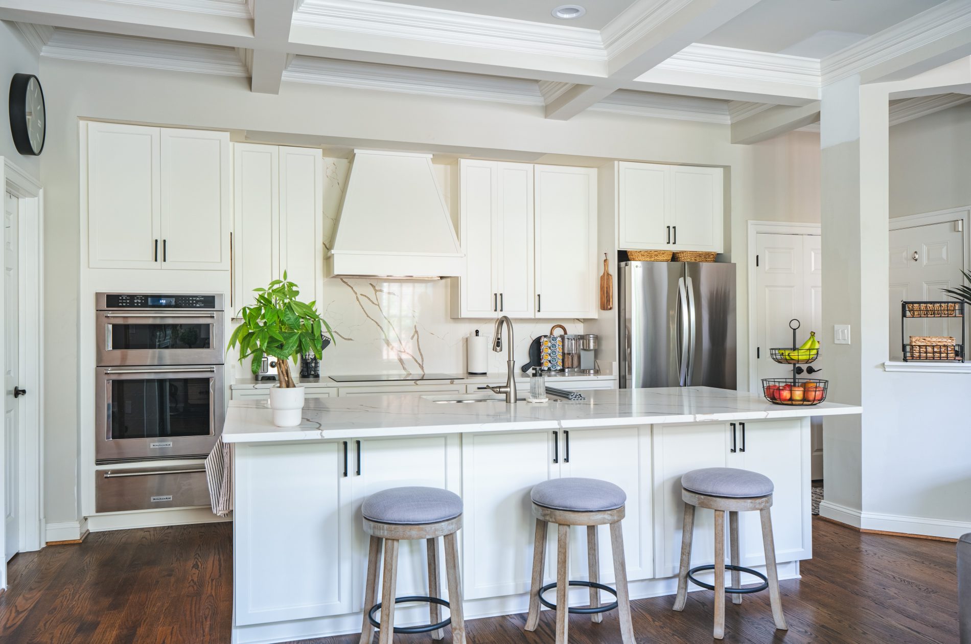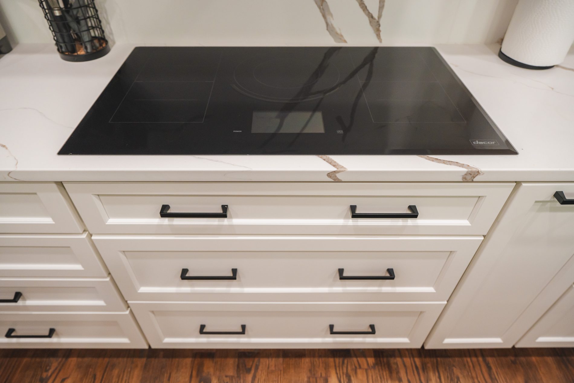 This Fairfax kitchen now feels brighter, more open, and thoughtfully designed for everyday living. The combination of white cabinetry, smooth quartz, and subtle matte black hardware creates a timeless look that works for both busy mornings and weekend entertaining.