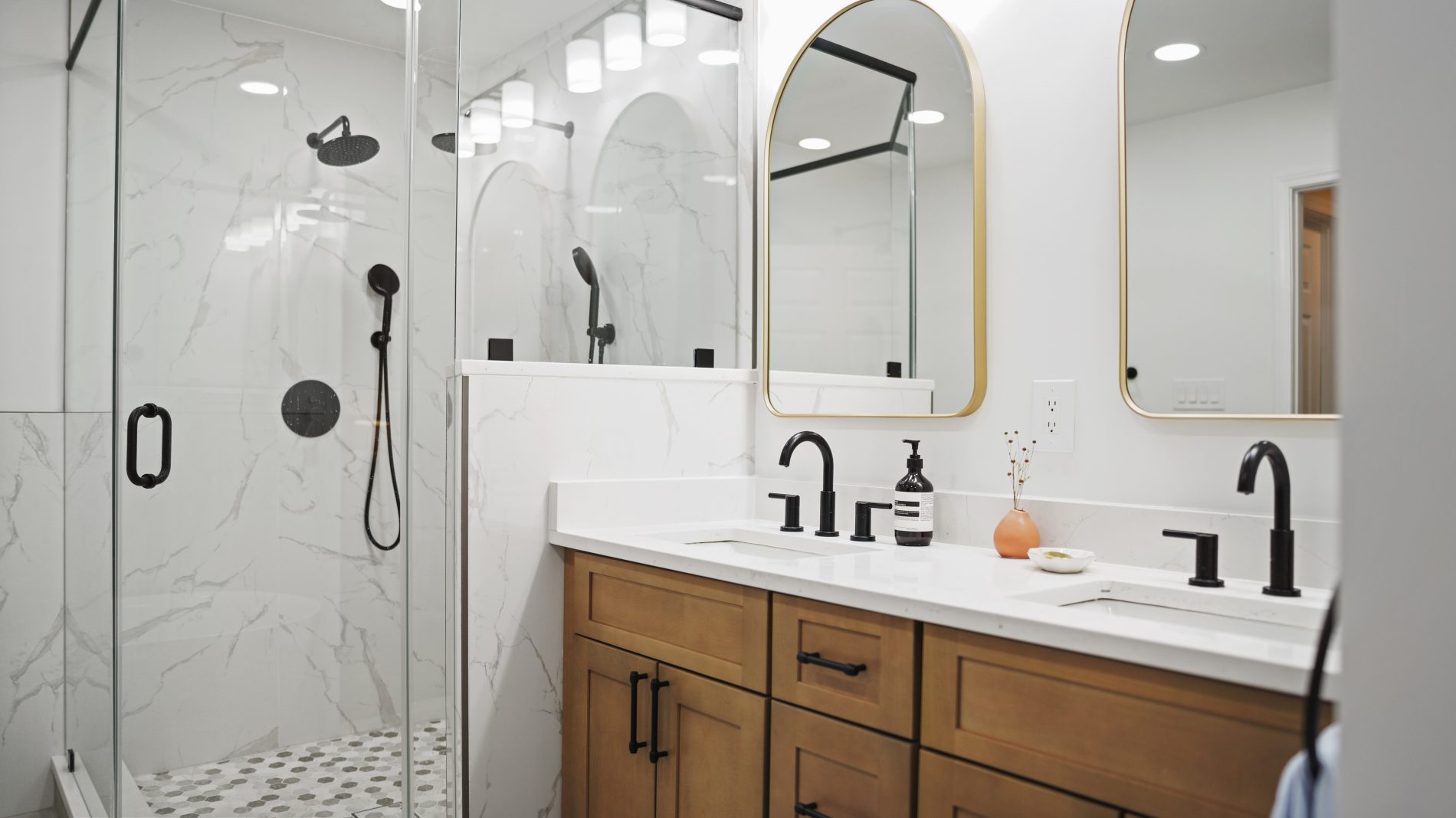 Installed a double vanity, providing ample storage and a refined aesthetic.