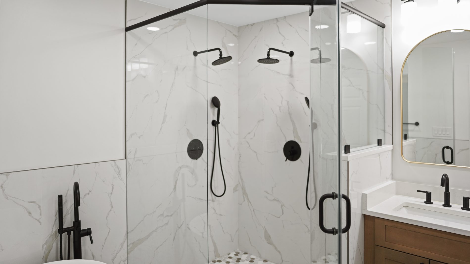 Created a spacious walk-in shower and a freestanding bathtub, adding both style and practicality.
