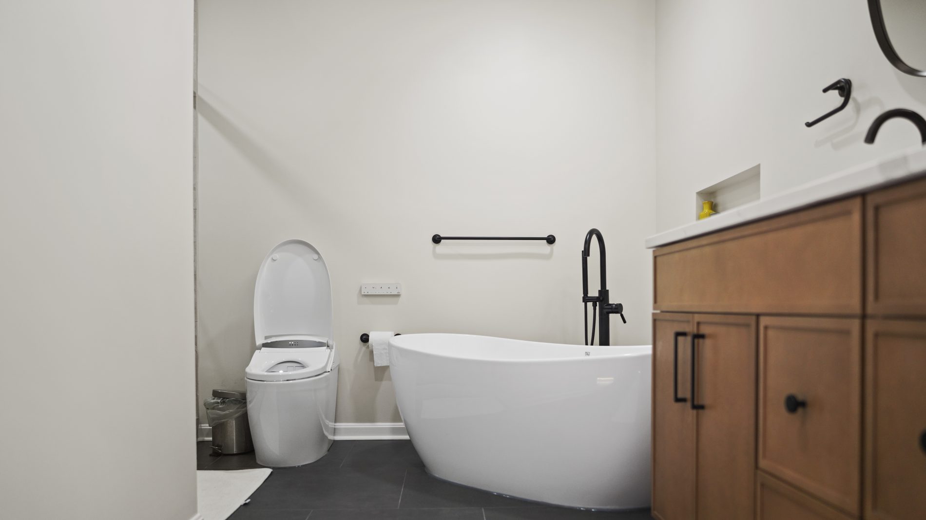 Designed a more functional layout, incorporating a spacious walk-in shower, a freestanding bathtub, and a double vanity.
